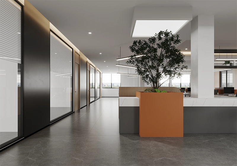 辦公室設計中最基礎的元素之一是空間布局。開放式的設計有助于促進團隊成員之間的溝通與協作,但如果過度開放,可能會導致噪音和干擾,影響員工的專注力。因此,設計時需要在開放區域和私密區域之間找到平衡。為集中工作設置安靜的隔音區域,供員工獨立思考或進行高強度任務;而開放區則適合團隊討論和互動。